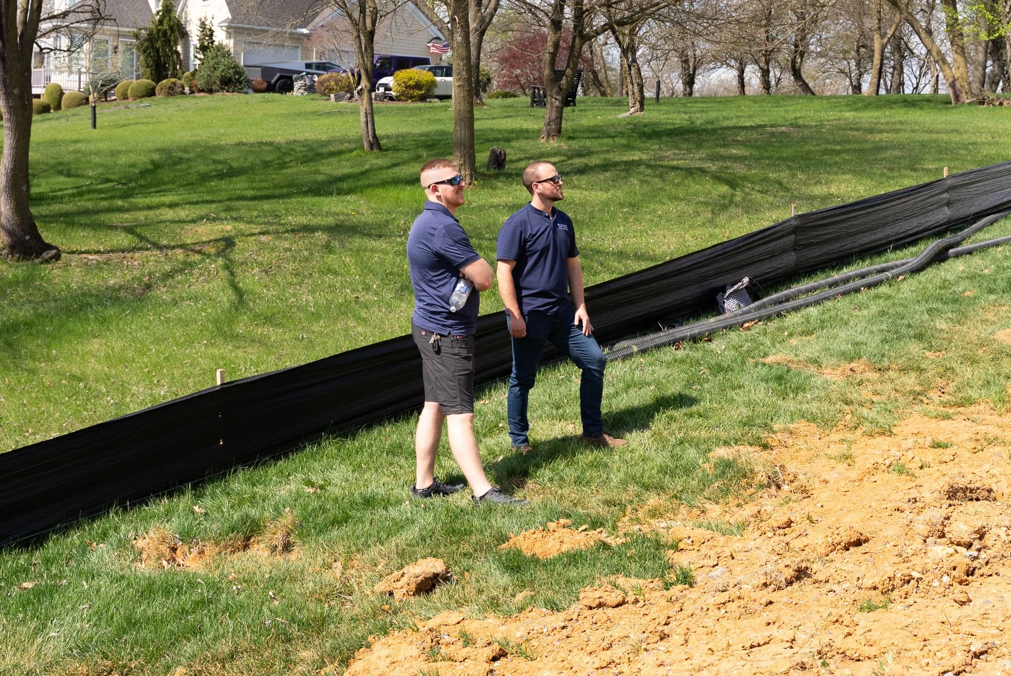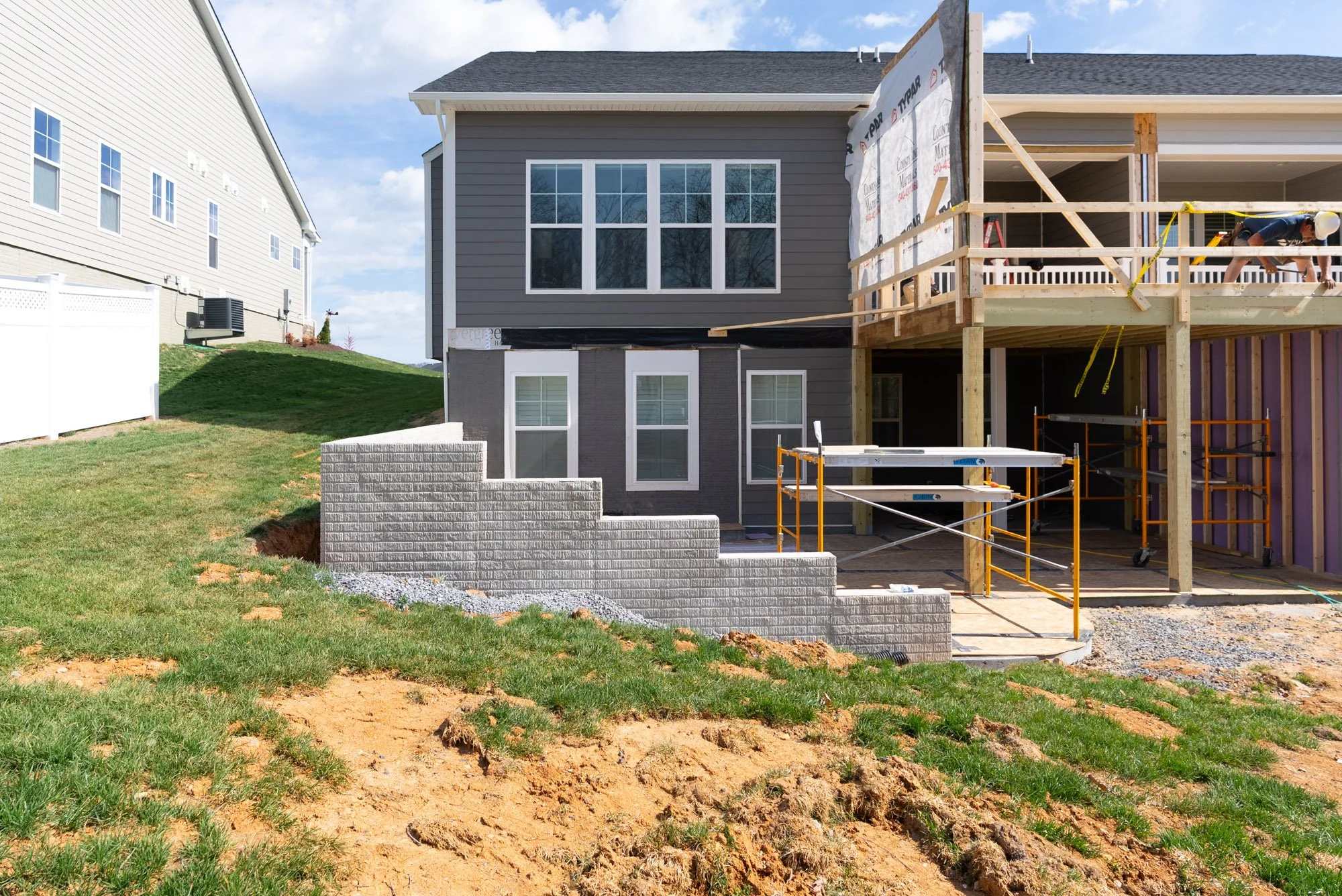 At ground level, we installed a new retaining wall on one side of the duplex to address the differences in elevation between the two units. This helped create a more usable lower area while also improving drainage away from the structure.