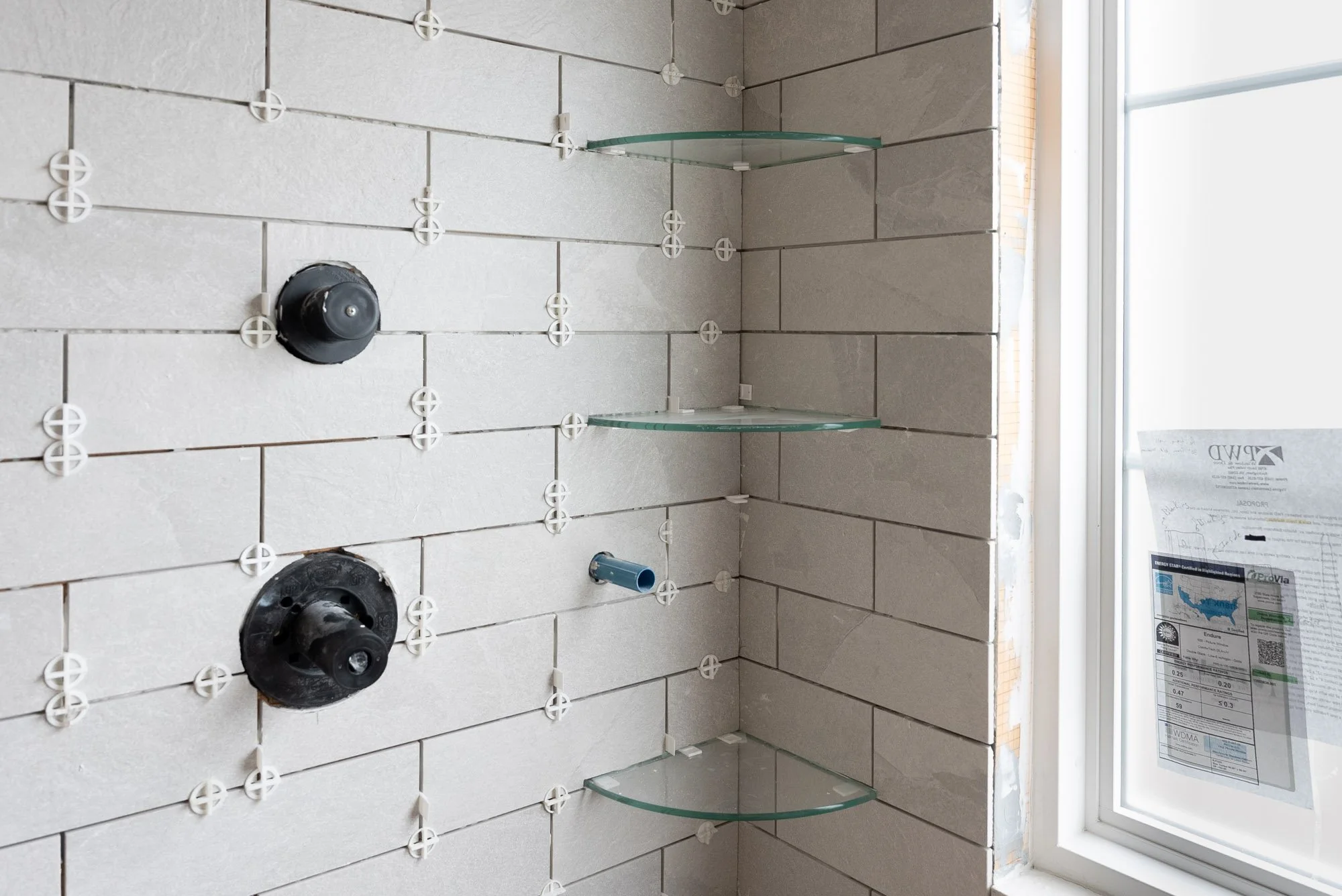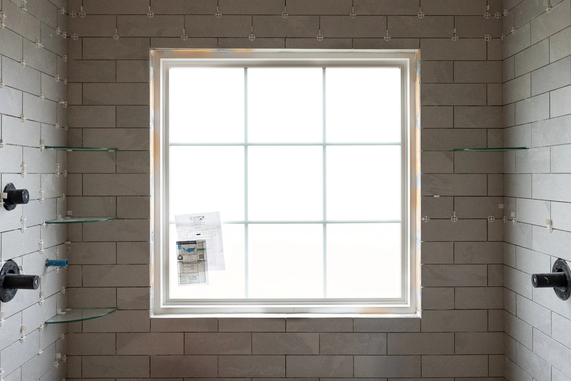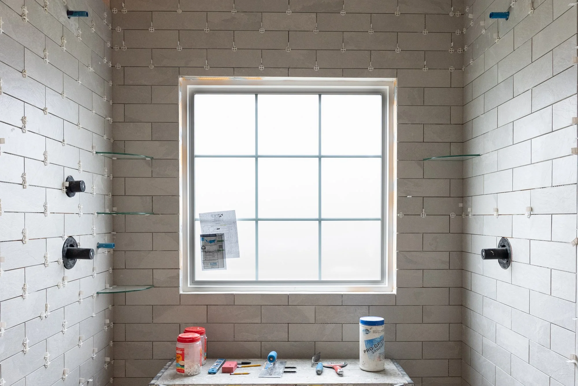 The original window location did not work well with the new shower layout, so it was relocated to be centered within the shower area. A large window allows natural light to fill the bathroom, helping the space feel brighter and more open. To maintain privacy, frosted glass was used so light can enter while still providing privacy within the shower.