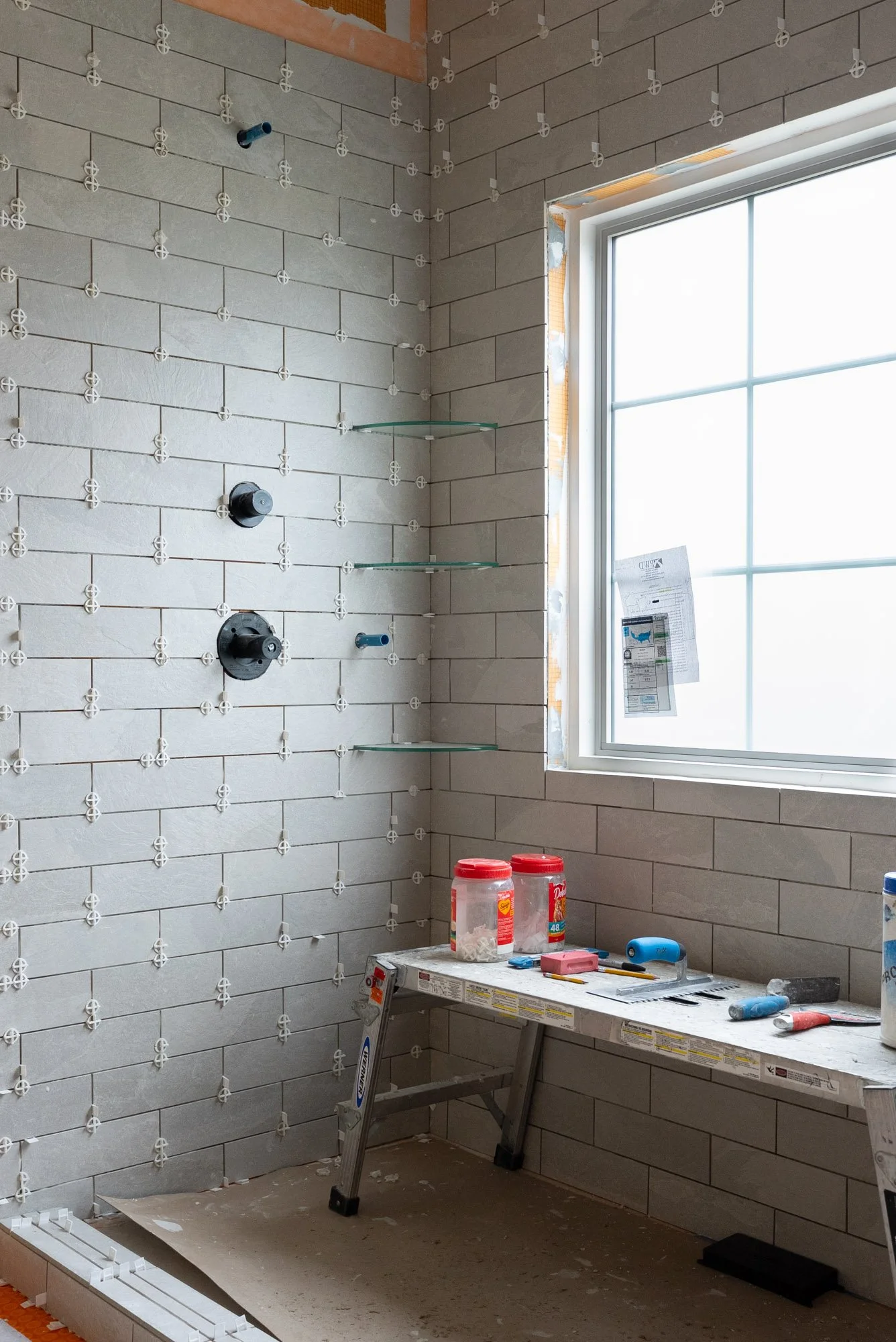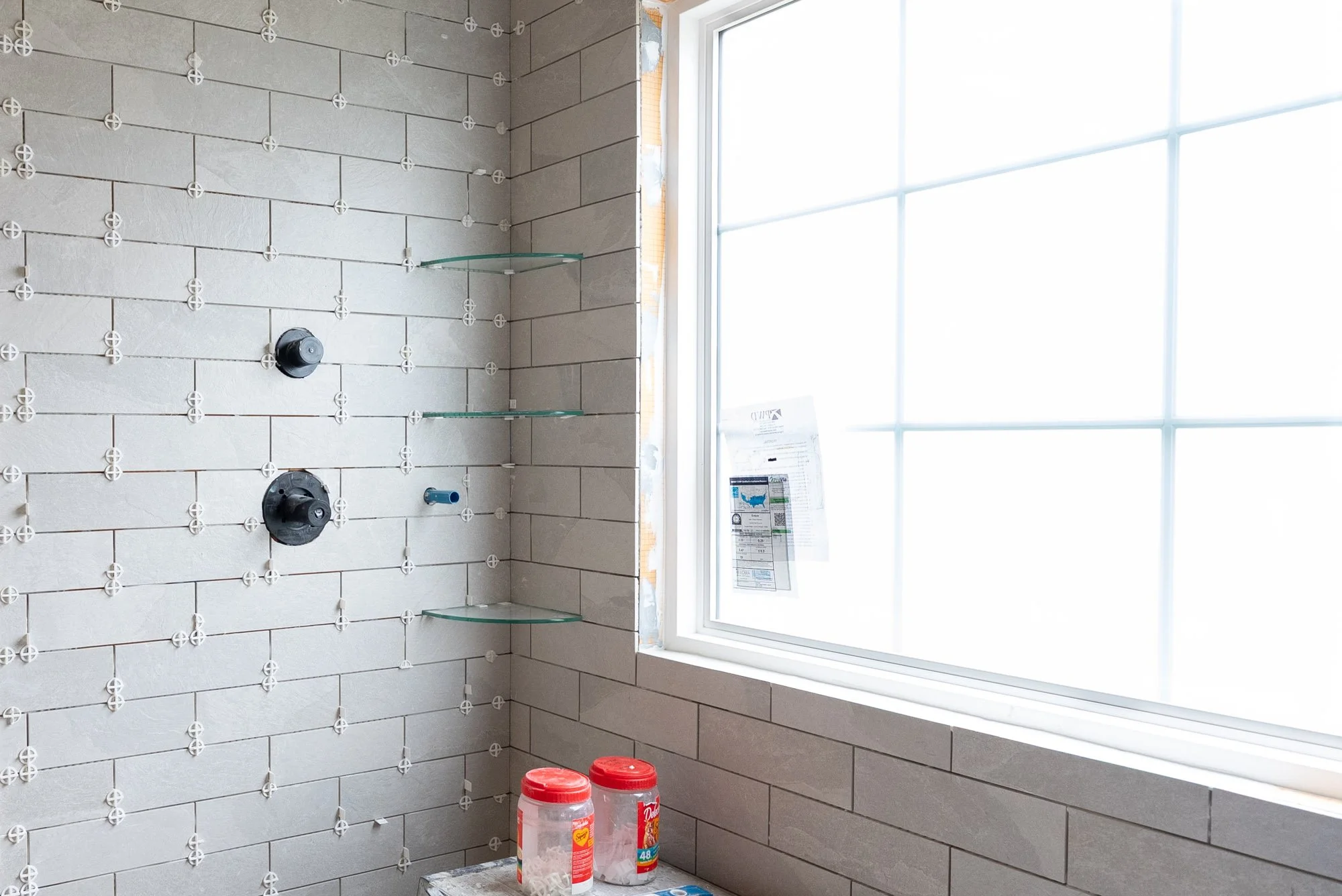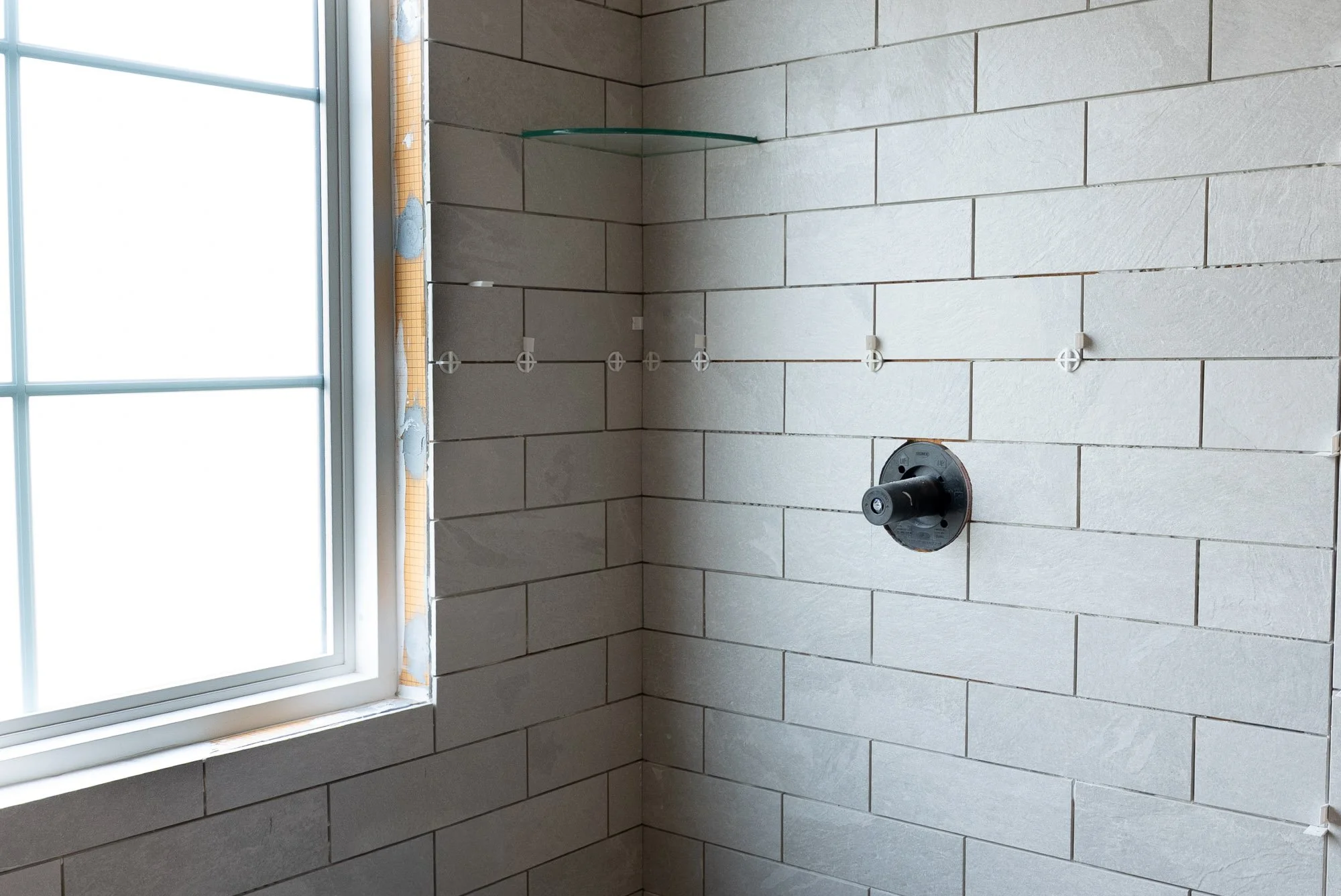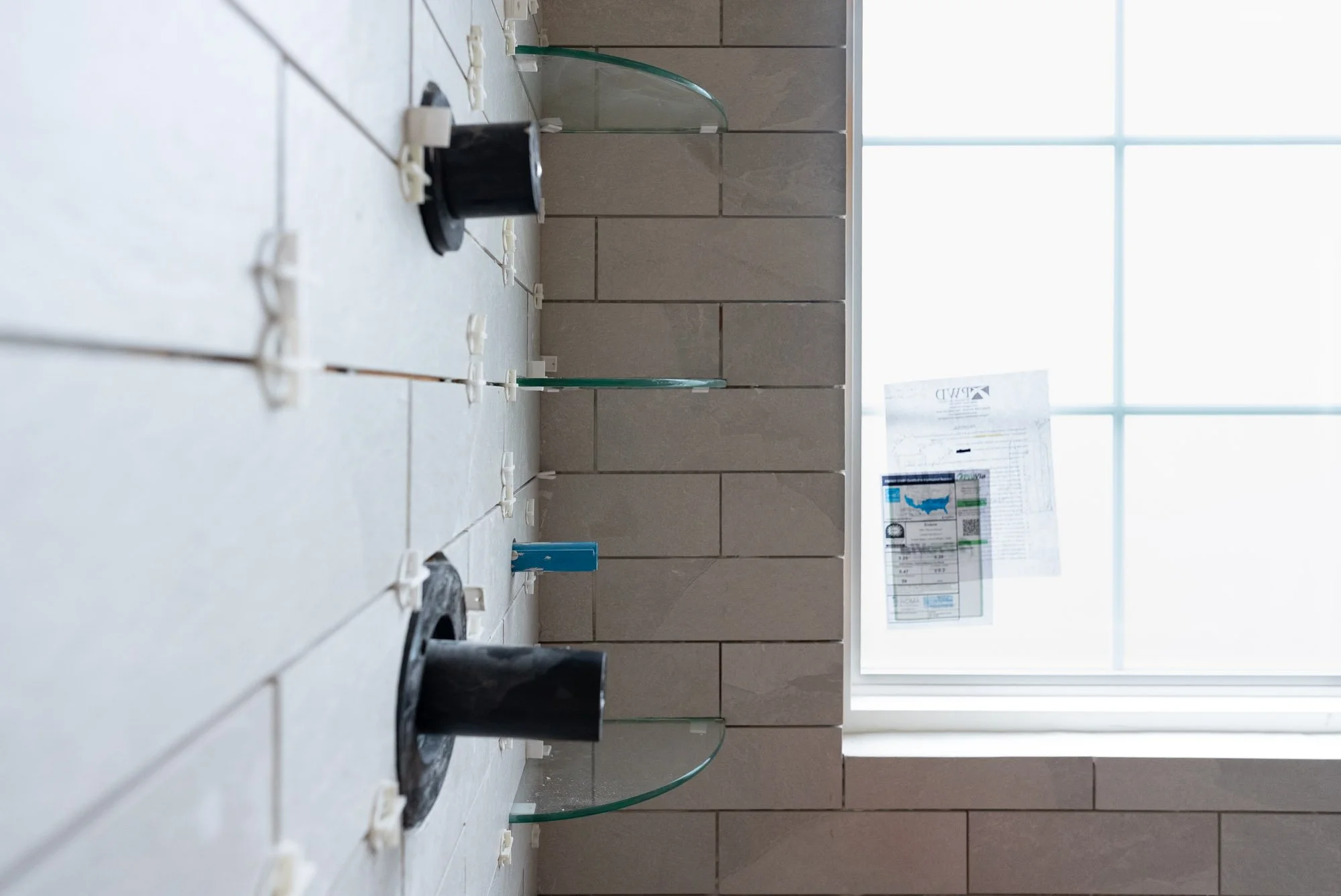 The original window location did not work well with the new shower layout, so it was relocated to be centered within the shower area. A large window allows natural light to fill the bathroom, helping the space feel brighter and more open. To maintain privacy, frosted glass was used so light can enter while still providing privacy within the shower.