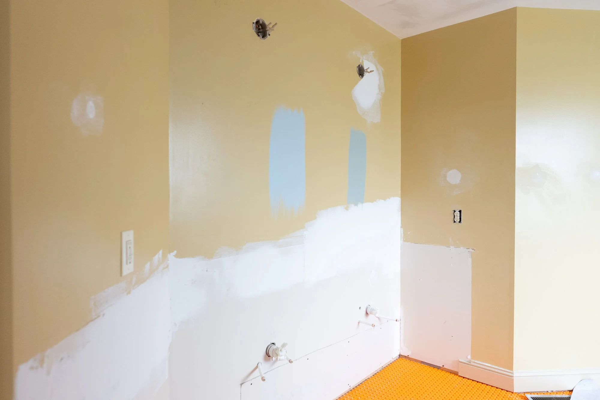 As the project continues, tile work will be completed, followed by painting throughout the space. Shiplap will be added to select walls to help them stand out, and vanities, trim, and final coats of paint will bring everything together. We look forward to the homeowner seeing the finished space and enjoying how the updated bathroom improves the way they live in their home.